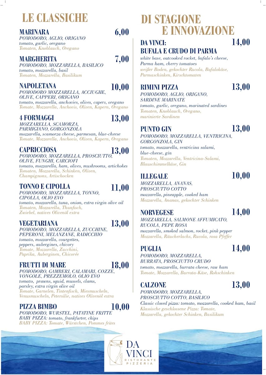 Da Vinci Ristorante Pizzeria Menu